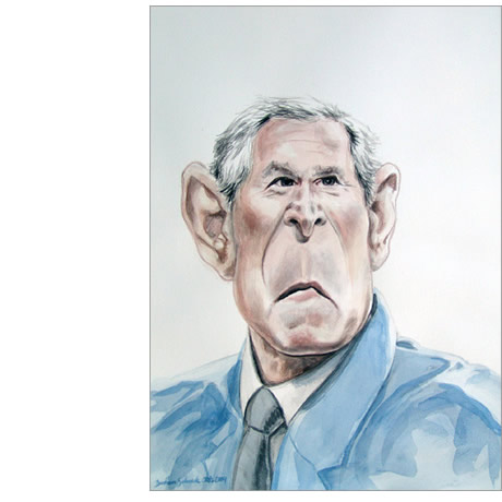 Caricature George W. Bush, aquarell on paper, 30 x 42 cm